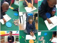 Grade 2s are learning place value through song, play, blocks and bottle tops.